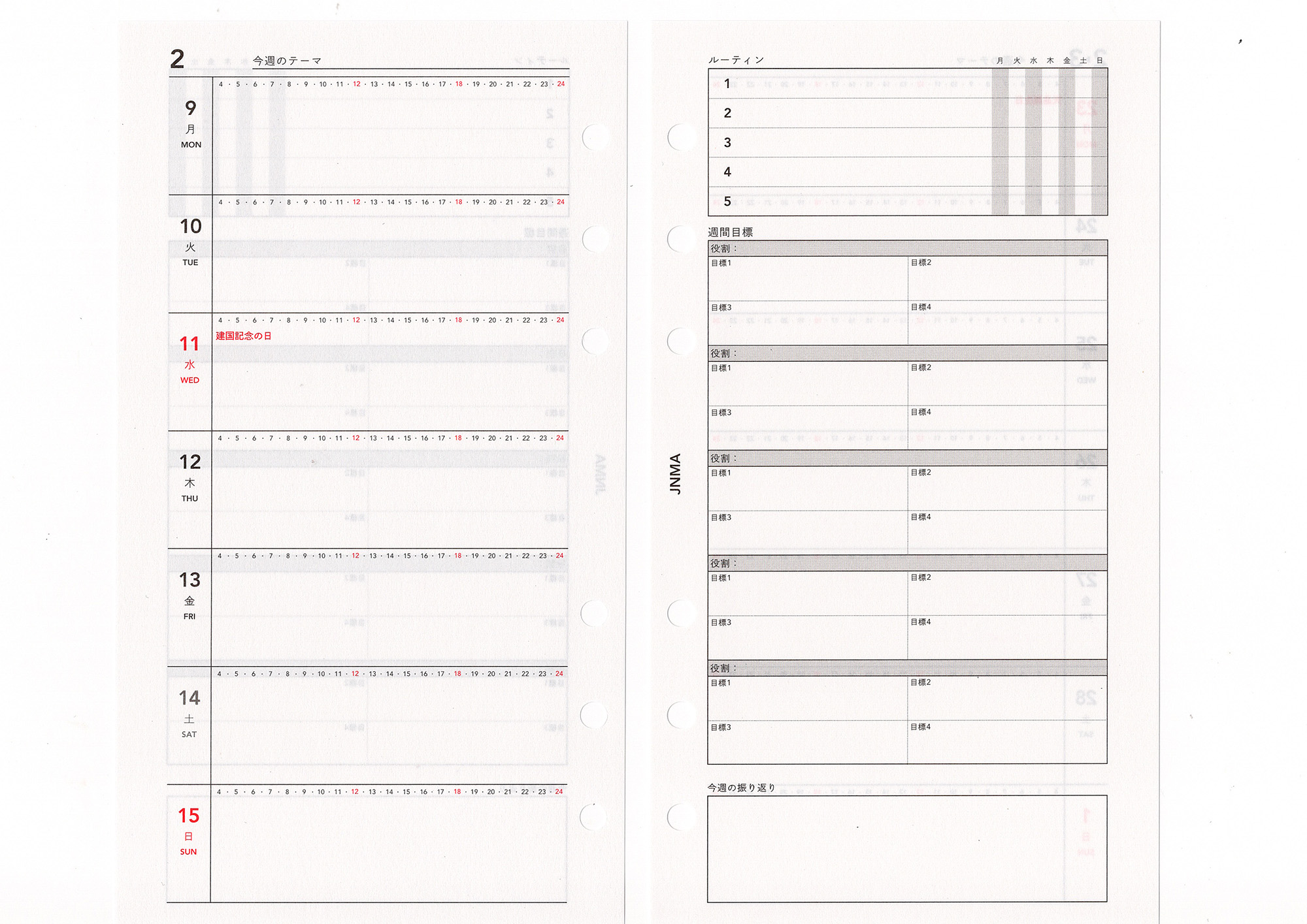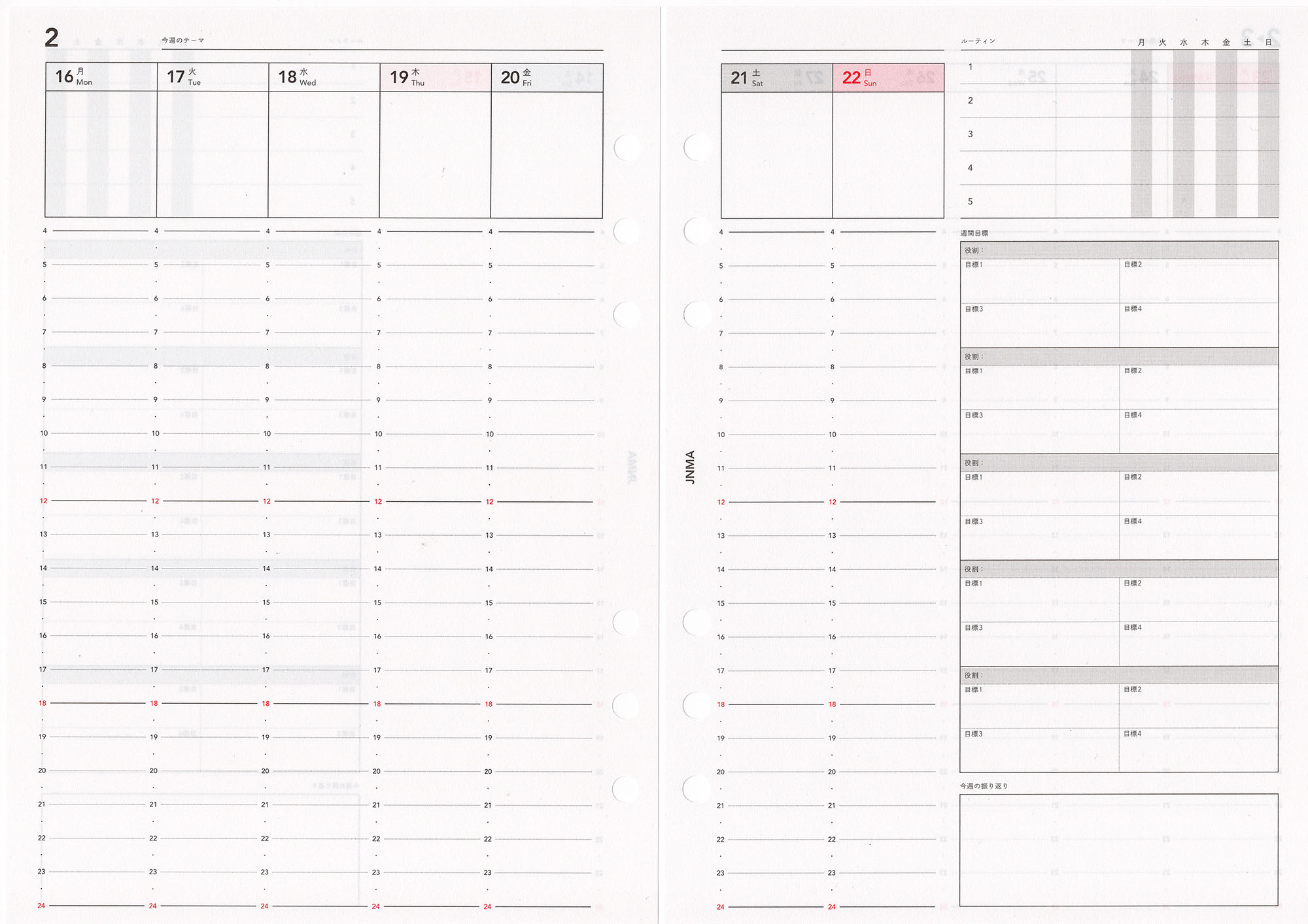 1週間単位でPDCAサイクルをしっかり回すための週間スケジュール表。 目標から1週間を計画し、そして目標を意識して日々を過ごす。そんな習慣形成に大きく役立ちます。 A5は「バーチカル・スケジュール」、バイブルは「レフト・スケジュール」の仕様となっています。